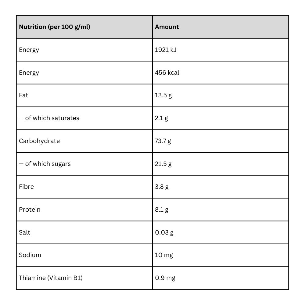 Wheat flour (GLUTEN) 37.4% – Sugar – Whole wheat flour (GLUTEN) 15.2% – Wheat starch (GLUTEN) – Oat flakes (GLUTEN) 10.9% – Rapeseed oil – Chocolate chips 5.1% (sugar, cocoa mass, cocoa butter, emulsifier: SOY lecithin (SOY)) – Whole EGGS (EGG) – Raising agent: ammonium carbonates – Skimmed MILK powder (MILK) – Acidifier: citric acid – Vitamin B1. May contain: MUSTARD, TREE NUTS, SESAME.Specification: