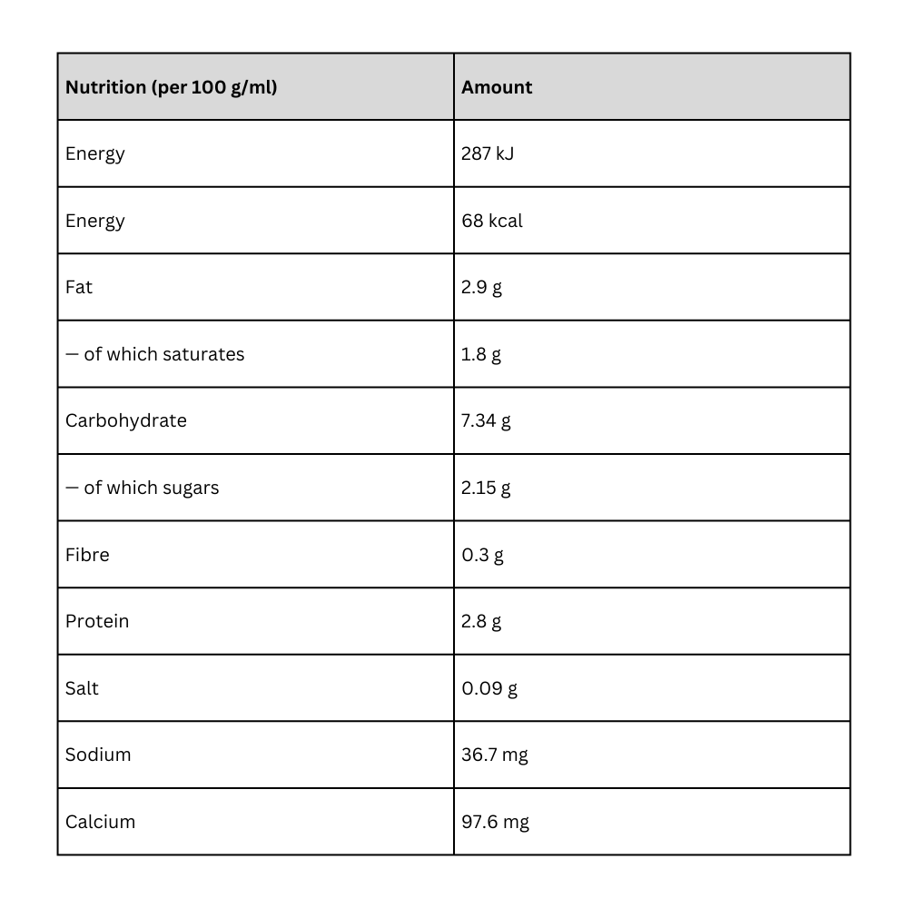 LAIT fermenté reconstitué à base de LAIT en poudre 37,5 % (LAIT) - LAIT écrémé en poudre réhydraté 37,5 % (LAIT) - Eau- Crème 7,90 % (LAIT) - Amidon transformé de maïs - Acidifiant : Acide citrique - Stabilisant : Pectine - Epaississant : Farine degraines de caroube - Emulsifiant : Monodiglycérides de colza - Arôme naturel - Antioxydant : Acide ascorbique