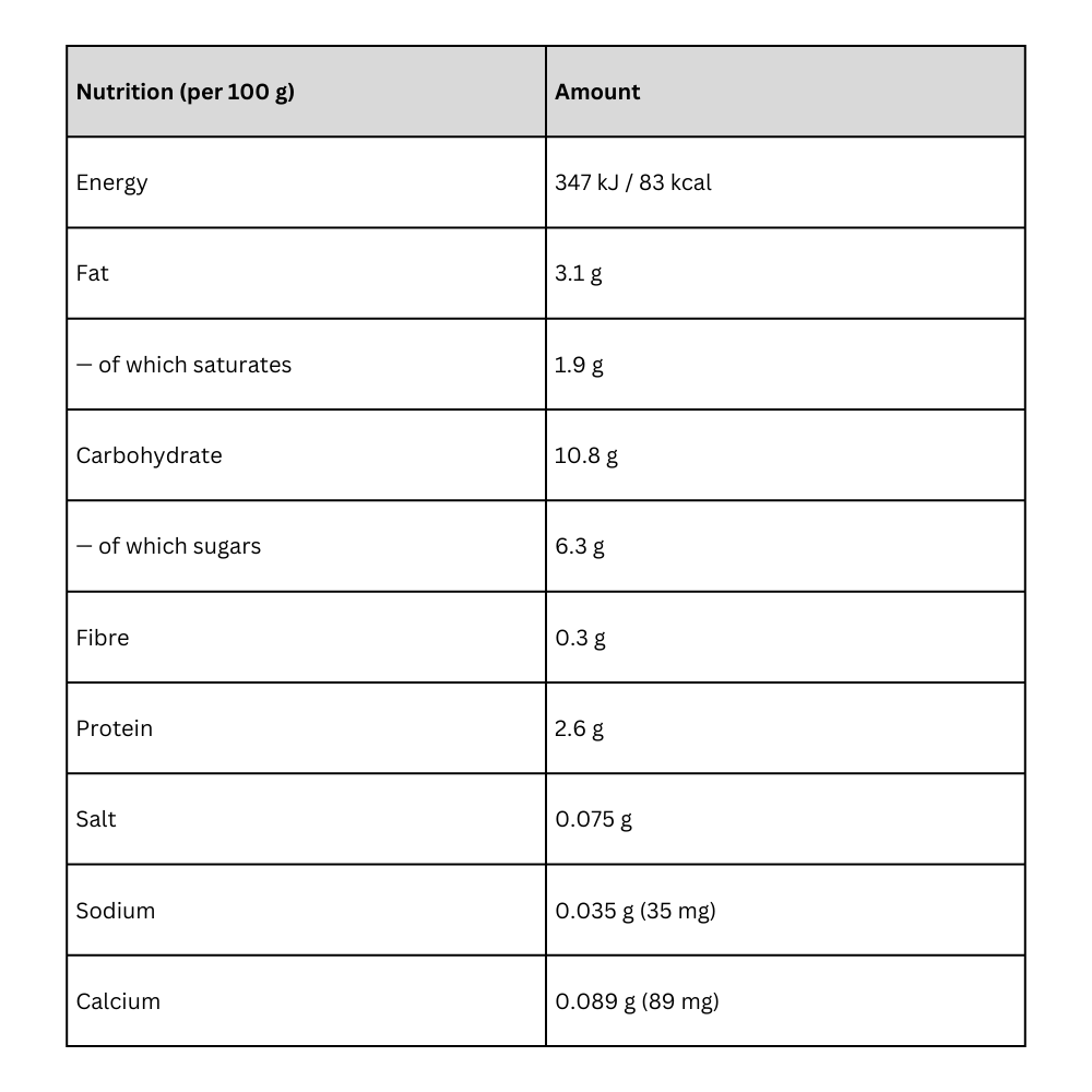 LAIT fermenté reconstitué à base de LAIT en poudre 34,0 % (LAIT) - LAIT écrémé en poudre réhydraté 34,0 % (LAIT) - Purée d'abricot 10,0 % - Crème 9,00 % (LAIT) - Sucre - Amidon transformé de maïs - Arômes naturels - Stabilisant : Pectine - Acidifiant: Acide citrique - Epaississant : Farine de graines de caroube - Emulsifiant : Monodiglycérides de colza - Antioxydant : Acide ascorbique