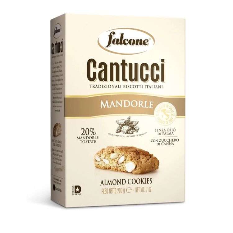 Les biscuits Falcone aux amandes et cantucci 200g sont des biscuits italiens traditionnels cuits deux fois au four à base d’amandes entières croquantes pour une saveur riche de noix et une texture ferme et croustillante. Fabriqués selon des méthodes classiques, ils offrent un goût authentique à la fois simple et raffiné. Parfait pour tremper dans le café, l’espresso ou le vin de dessert, ces cantucci se ramollissent légèrement tout en libérant leur plein arôme. Idéales en aftermeal ou à partager, elles apportent une touche de tradition italienne à chaque bouchée.