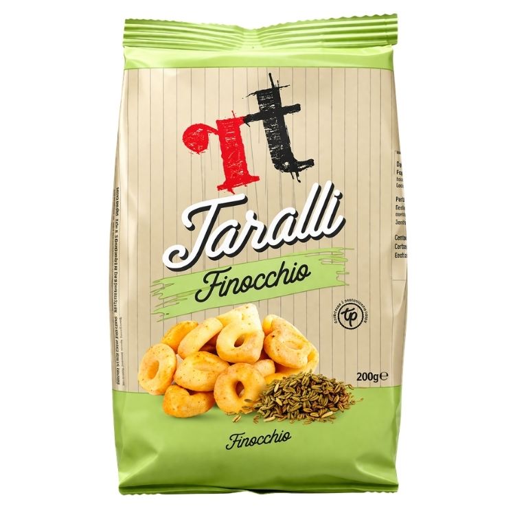 RT Taralli Finocchio Snack 200g sont des rondelles traditionnelles cuites au four italiennes aromatisées avec des graines de fenouil, offrant un goût aromatique distinctif et un croquant satisfaisant. Croustillants et légèrement assaisonnés, ils allient la saveur douce et savoureuse de la pâte à la douceur subtile du fenouil. Parfait pour grignoter, partager ou servir avec des boissons, ces taralli apportent un caractère italien authentique et une touche unique au grignotage quotidien.