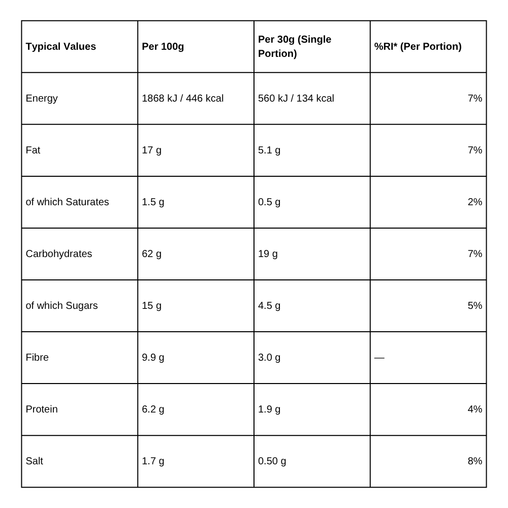 Potato flakes, wheat flour, sunflower oil, modified corn starch, pesto-flavoured seasoning 3%* (whey powder, natural flavouring (milk), salt, sugar, onion, garlic, buttermilk powder, parsley, pepper, basil), wheat fibre, salt. *Percentages expressed on the finished product. May contain traces of nuts, mustard, sesame, soy, and eggs.