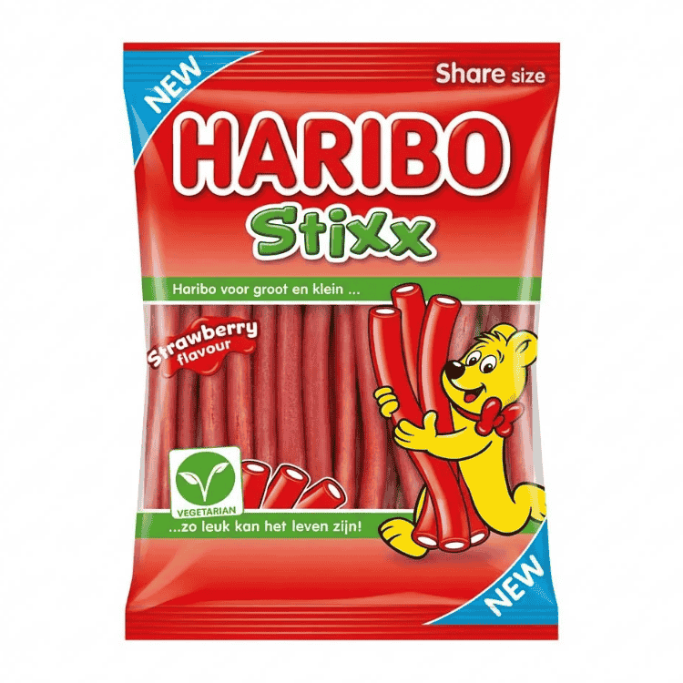 Sugar; glucose syrup; wheat flour, water; wheat starch; palm fat; emulsifiers: mono- and diglycerides of fatty acids, mono- and diglycerides of fatty acids esterified with citric acid; dextrose; acid: citric acid; acidity regulator: trisodium citrate; gelling agent: carrageenan; sunflower oil; flavouring; fruit and plant concentrates: radish, apple, blackcurrant, carrot; glazing agent: white and yellow beeswax.