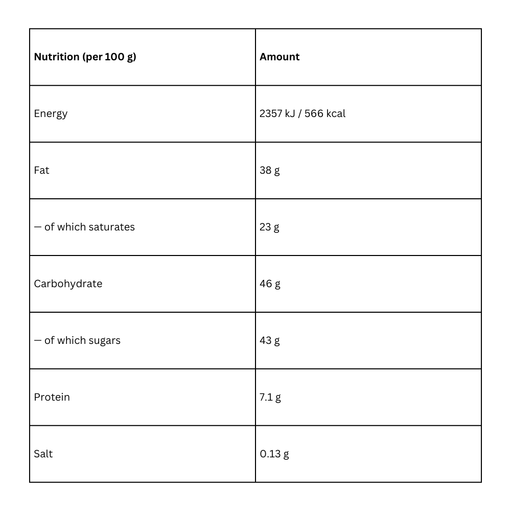 Allergens: May contain ALMONDS, HAZELNUTS and other TREE NUTS.