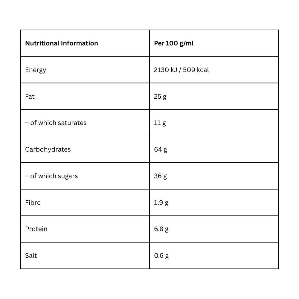 WHEAT flour 38%, MILK chocolate 23% sugar, cocoa BUTTER, cocoa paste, skimmed MILK powder, whey permeate (MILK), palm oil, pastry BUTTER, emulsifiers (E442, E476), flavour, sugar, vegetable oils (palm, rapeseed), whey powder (MILK), WHOLE MILK POWDER 1.7% (WHOLE MILK equivalent 13%), glucose syrup, lactose (MILK), salt, leavening powder (ammonium carbonates, sodium carbonates), emulsifier (SOY lecithins), flavourings, acidifier (citric acid). MAY contain EGG AND NUTS.Specification:
