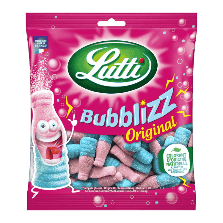 Discover the delightful taste of Lutti Bubblizz, a 300g pack of chewy bubblegum candies that bring a burst of flavor to every bite. Perfect for candy lovers of all ages, these colorful, fun-shaped treats are ideal for sharing or enjoying on your own. Made with high-quality ingredients, Lutti Bubblizz offers a unique texture that makes it easy to chew and blow bubbles, enhancing your snacking experience. Whether you're planning a party or simply looking to satisfy your sweet cravings, you can easily buy Lutti Bubblizz online or at your local store, making it a convenient addition to your candy collection.Ingredients: