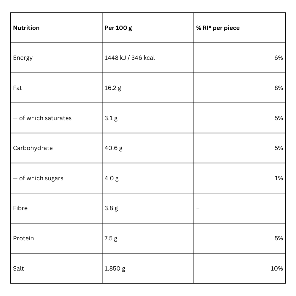 Soft wheat flour type ''0'' 61.3%, Waterfall, Extra virgin olive oil 8.7%, Sunflower oil 4.5%, Salt, Yeast, Emulsifiers: mono and diglycerides of fatty acids, Dried sourdough (wheat), Thickener: guar fiber, Malted barley flour, Flavors, Treated with ethyl alcohol on the surface, May contain traces of: nuts, milk, soy and eggs